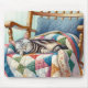 Sweet Gray Cat Sleeping on a Quilt Mouse Pad