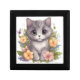 Sweet Gray Kitten with Flowers Kawaii Chibi Gift Box