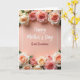 Designed with a soft, affectionate look, this Mother’s Day card centers on the message “Happy Mother’s Day Great Grandma” in dark lettering that feels gently flowing across the middle. A thin white rectangular outline frames the words, keeping the focus on the greeting while leaving breathing room around it. Full, layered garden blooms gather along the top and bottom edges like a tender embrace, suggesting closeness and family affection ❤️. The flowers mix blush pink, creamy white, and warm apricot tones, with curled petals that add depth and a velvety look. Small sprigs of fresh green leaves peek out between blossoms, adding contrast and a natural touch 🌼. Behind everything, a pale peach background fades in a light gradient that makes the floral edges feel softly lit. The upper cluster is slightly fuller on one side, while the lower cluster spreads wider with a few blooms angled toward the center frame.
