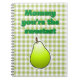 Cute green pear on a spiral notebook suitable as a gift for Mother's Day.