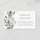 Adorable jungle-themed display shower insert card featuring a sweet baby elephant and elegant watercolor greenery in green and gold. Matching items available in our store!