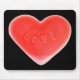 Cute design featuring a gummy candy heart with 'love' written on it in shades of red and pink on a black background. Mousepad with a customizable design for you to personalise with your own text, pictures and ideas. Created using an original photograph and digital techniques by Jess Perry.