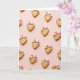 This Valentine’s Day card features a repeating pattern of heart-shaped cookies set against a soft pink background. Each cookie is golden brown and topped with a small white icing heart placed right in the center. A baby-pink satin ribbon wraps around every cookie and is tied into a neat bow near the top, making each one look like a tiny gift. The cookies are arranged in a staggered pattern that continues across the card, creating a warm and inviting look. Soft lighting highlights the gentle texture of the cookies and the smooth shine of the ribbon. With no text on the front, the design lets the sweet details speak for themselves, making this card a lovely way to share love and affection on Valentine’s Day. ❤️