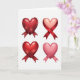 This design shows four shiny heart shapes arranged in a simple 2x2 grid on a white background. Two hearts are deep red, and they look glossy, almost like smooth glass catching little reflections. Another heart is a soft blush pink, and it feels gentle and calm next to the richer reds. The top-right heart is pale peachy pink with a deep red ribbon wrapped around it, like it’s being held close. The ribbons on the hearts have a smooth, silky look with neat folds and crossings, like gift wrap tied with care. There’s no text on the front, which leaves room for you to write your own words and make it feel more personal. It’s a sweet, simple way to say “I care about you” to a partner or a close friend 🥰❤️, and it’s easy to share Valentine’s Day sentiments.