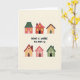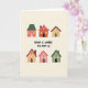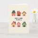 This card features a soft, creamy background with six small, stylized houses arranged in two neat rows, creating a cozy little neighborhood scene. Each house uses muted pastel tones like gentle pink, earthy green, and warm red, with deeper brown roofs and tiny chimneys that add a snug, lived-in look. The slightly uneven outlines and soft shading give the homes a tender, friendly feel, like a quiet place where close bonds grow ❤️. Small square windows glow in cheerful yellow with simple cross details, suggesting warm rooms and caring company inside. Centered between the rows, rounded lettering reads “HOME IS WHERE MY MOM IS,” set in a dark tone that stands out clearly against the light background. The balanced layout feels calm and affectionate, like a shared moment between family members who enjoy being together 🌼. The houses sit evenly spaced around the message, with the yellow windows repeating across all six homes. The rooftops vary slightly in shape, and a few chimneys tilt gently upward above the brown rooflines.