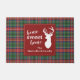 Cute home sweet home Christmas door mat you can easily customize by clicking the "Personalize" button, Featuring deer silhouette and clan MacCulloch tartan in green red checkered pattern.