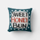 A cute typographic food design that says "Sweet Honey Bun". It's black and red text on a rectangle with funky, playful white dots surrounding it, all on a teal background.