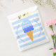 For a sweet ice cream themed 1st birthday party with a large blue ice cream cone on a background of white and pastel blue stripes. Personalize and add the name of the child and age. The text: Thank you for coming!