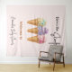 Celebrate the special day with Sweet Ice Cream Summer Here Scoop Baby Shower Welcome Sign Tapestry! Our customized ice cream-themed baby shower backdrop decor feature unique bohemian elements like modern watercolor scoops of ice cream. Perfect for a summer outdoor bohemian themed party for future mother-to-be, make her celebration memorable with a unique and modern look that she will love!