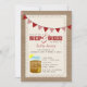 A sip and see invitation featuring red bunting at top and an illustration of a mason jar of sweet iced tea with lemon at bottom left. Background on front and back is burlap inspired. Front features lace inspired design. Personalize the text with your information.