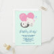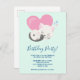 Birthday party invitation postcard with an adorable graphic illustration. A white kitty cat with a cute paw print image on her fur. Sleeping peacefully. A big pink heart behind her and some little stars too. Mint green background.