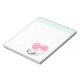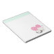 A notepad with an adorable graphic illustration. A white kitty cat with a cute paw print image on her fur. Sleeping peacefully. A big pink heart behind her and some little stars too. Mint green border along the top.