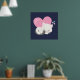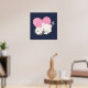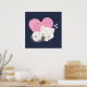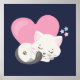 A poster with an adorable graphic illustration. A white kitty cat with a cute paw print image on her fur. Sleeping peacefully. A big pink heart behind her and some little stars too. Dark blue background.