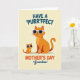 The front design shows two human-like cat characters in warm shades of orange and amber, sitting close together in the lower middle as if sharing a quiet, friendly moment ❤️. The larger cat sits upright with smooth curves and gentle terracotta shading, while the smaller companion mirrors the pose, leaning in just enough to suggest an easy bond. Both wear matching white-framed sunglasses that hide their eyes, letting their smiling mouths, tiny noses, and fine whiskers carry the affectionate tone. The background is a soft, sunlit yellow that keeps the scene light and cozy, like a warm afternoon glow. Rounded, thick lettering wraps around the pair, using a light pun to match the cheerful look without crowding the illustration. The main text appears in bright orange, while smaller supporting words are set nearby in a darker warm tone for contrast, with generous spacing so everything stays easy to read 🌼. Subtle shadowing in deep orange along the cats’ bodies adds depth, while the sunglasses stay crisp white to stand out. The composition keeps the cats centered and the text framing them, all set against that smooth yellow field.