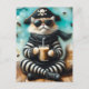 An adorable cat pirate with a coffee wearing an adorable pirate costume sitting on a wooden dock AI generated art