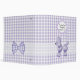 Cute baby girl's scrapbook / photo album baby book binder done in a lavender and white checkered pattern. Lovely graphics of a white lace ribbon stretches across the bottom of the binder with an adorable fluffy looking purple poodle decorating the ribbon, on the front of the binder and a checkered bow, decorates the ribbon on the back cover of the binder. A purple and white decorative text frame, has custom black text ready to personalize. Great way to keep all those wonderful memories of your baby while growing up. All inserts and pages are sold separately at your local office supply or craft shop also at Avery online.