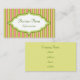 Lime and pink candy stripes decorates this vintage style business card. Customize the information on this business card to suit your needs. Use this business card for a bed and breakfast, bakery, florist, decor, boutique, pastry shop, candy shop, gourmet foods, interior design, a barber, salon, catering, etc....The design is from original art.