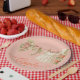 Add a cozy orchard touch to your fall baby shower with this red apple clothesline design. A sweet and rustic paper plate perfect for celebrating your little one in charming autumn style.