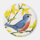 This vintage illustration is a sweet little blue and red bird sitting on a branch with yellow flowers and singing. See my store Art by MAR for matching products with this design.