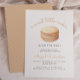 This cute baby shower invitation features a watercolor illustration of a beige macaron cookie. Above, the words "a sweet little cookie" appear in trendy beige handwriting script. Personalize the text with the name of the mom-to-be in beige script and the details in gray sans serif font. The back of the card features a delicate white pattern overlay on a beige background.