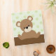 Custom baby photo binder features a cute vector illustration of a brown bear sitting on a brown and green polka dot pattern background. © Cocoa Studio