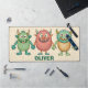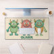 This adorable personalized desk mat features three cute, happy monsters having fun together.