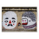 cool guy with white face and red nose seems to be in love with some hairy kind of girl