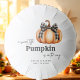 Welcome your sweet little pumpkin with a beautiful balloon that floats autumn cheer! This design features a delicate watercolor floral wreath in soft fall shades of rust, mauve, and dusty orange surrounding three charming pumpkins. The gender-neutral palette and lovely script make it the perfect centerpiece decoration for any cozy fall baby shower celebration. A gorgeous way to share your happy news!