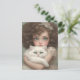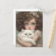 This is an adorable postcard of a little girl hugging her fluffy white cat. They're looking towards us as if we've interrupted their moment of affection. It's such a sweet scene!