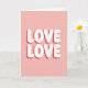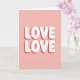 This greeting card shows two stacked rows of the word “LOVE” centered on a bubble-gum pink background, creating a sweet, close-to-the-heart look 🥰. The letters are a soft, rounded sans-serif in bright white, with each row sitting evenly in the middle of the vertical layout. Behind every white letter, a deeper red drop shadow sits slightly offset, giving the words a raised, 3D feel that reads like a warm embrace ❤️. With no characters or scenery, the design leans on simple color and repetition to suggest a steady, shared affection, like saying it twice so it really lands. The lighting looks even across the surface, keeping the edges smooth and the shapes easy to read. There’s no extra wording at the top or bottom, so your eyes go straight to the centered message. The palette stays tightly focused on pink, white, and red, with the red shadows forming a crisp second layer under each “LOVE.”