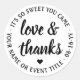 Sweet Love & Thanks Simple White & Black Script Classic Round Sticker