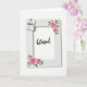 This card features a white rectangular frame illustration set against a soft white background, giving it an airy, calm look. Inside the frame, the word “blessed” sits centered in dark lettering, drawing your eye like a quiet promise of care ❤️. Two opposite corners are decorated with watercolor-style floral clusters, showing soft pink rose-like blooms and gentle green leaves that lean inward as if offering a hug. Near the upper left area, a small tag-shaped accent displays “MAMA!” in black letters, angled slightly to feel casual and affectionate 👩. Just beneath that word are three raised-looking dots in a bright pink tone, adding a tiny burst of color and texture. The flowers appear slightly layered, as though you could almost feel their edges against the smooth frame. The text and decorations are spaced with plenty of white space around them, and the floral corners are set on a diagonal from top left to bottom right 🌼. The overall look is bright and minimal, with pink blossoms and green leaves framing the dark “blessed” text in the center.