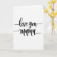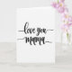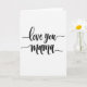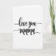 Designed with a bright white background, this card centers a simple message that feels like a close hug ❤️. The words “love you mama” sit in the middle, written in flowing black lettering with a tender, romantic softness to the curves. The text is all lowercase, and the thick-to-thin strokes give it a gentle, intimate rhythm, like someone speaking quietly to a person they adore. Small texture variations in the lines make the phrase feel human and close, as if it was written just for her. The word “love” starts slightly higher, leading the eye down to “you” and then “mama,” creating a smooth, affectionate reading path. A long curl extends from the first letter and another sweeping tail finishes the last word, adding a graceful frame 🌼. The black lettering stays crisp against the white space, with the largest flourish stretching outward from the opening “l” and the final “a.”