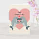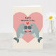 This design shows two stylized sea creatures, like manatees, in soft blue‑gray and white, floating face-to-face as their flippers meet in a gentle touch 🥰. Their big round eyes, tiny smiles, and faint pink blush make the moment feel bashful and sweet, as if they’re leaning in with quiet affection ❤️. Behind them sits a large, muted pink heart that frames their bodies like a soft embrace against a creamy off‑white background. Near the top, the text “happy valentine’s day” is placed above the pair in black lettering, easy to read and centered. A small red heart appears between the words, adding a bright accent that points your gaze back down toward the couple. The simple shapes and flat color areas keep attention on their closeness and the space between their snouts. Understated shadows and minimal detail give the scene an airy, calm look without distracting from the tender pose. The background remains uncluttered, with the pink heart filling most of the space behind the two blue‑gray figures.