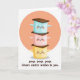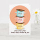 This card features three square, marshmallow-like characters stacked vertically on a white background, centered within a soft peach circle that reads like a warm spotlight. The top figure is light blue, the middle is pale pink, and the bottom is sunny yellow, and each one wears a thin dark-brown rectangle on its head like a chocolate layer. Simple faces with curved smiling eyes, crescent grins, and rosy cheeks give them a sweet, friendly look, and their tiny arms reach outward as if holding each other steady. The close stacking and matching smiles suggest a cozy bond, like friends leaning in for a photo during springtime. Beneath the stack, a dark-brown handwritten-style line of text sits centered and reads, “peep. peep. peep. s’more easter wishes to you.” A small spring touch comes through in the soft pastel shading and gentle gradients, with a little 🌷 and 🐰 energy in the overall scene. The peach circle sits behind the trio, and the dark-brown message rests just below their feet in the open white space.