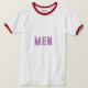 Men Text or Name or Word with Lavender Color Text and The Style is Basic Ringer T-Shirt, Color type is White/Red and Size type is Adult 2X. You can able to edit the text name of MEN.