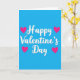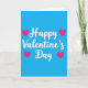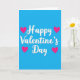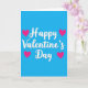 This greeting card features the words “Happy Valentine’s Day” centered on a cerulean blue background. The lettering is creamy off-white with a smooth, rounded look that makes it feel soft and friendly. The phrase is written in a flowing, cursive-style font, and it sits right in the middle where your eyes land first. Four fuchsia hearts add a sweet touch: two float above the word “Happy,” and two sit near the end by “Day.” The bright pink hearts stand out strongly against the blue, making the message feel lively without being too much. Altogether, the simple colors and clear layout make it feel easy to give, whether you’re sharing romance or close friendship ❤️. It’s a thoughtful way to say “I’m glad you’re in my life” without needing a long note 🥰. Hope it helps you share Valentine’s Day feelings with someone you care about.