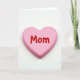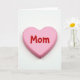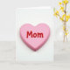 This card features a single pastel pink heart centered on a bright white background, creating a simple scene that feels calm and close ❤️. Soft, even lighting shapes the heart into a gentle 3D form, with a faint shadow underneath that makes it look like it’s resting on a smooth surface. The heart has rounded edges and a matte finish, giving it a cozy, candy-like look without being shiny. Across the front of the heart, the text “Mom” sits in the middle, standing out as raised letters in glossy red. The contrast between the soft pink base and the rich red lettering adds a sweet, affectionate energy, like a warm hug shown in color. With so much open white space around it, the eye is drawn straight to the center, where the message feels intimate and direct 🌼. The only elements in view are the pink heart, the red raised word, and the small shadow on the white backdrop.