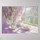 This warm and inviting painting captures a cozy moment by the window, where two delicate teacups and saucers sit ready alongside a plate of tempting pastries. Soft natural light filters through, illuminating the scene and highlighting the gentle beauty of a vase filled with fresh pink flowers. The composition invites you to pause and savor simple pleasures—comfort, companionship, and the quiet joy found in everyday moments. It’s a serene celebration of warmth and connection, perfect for anyone who cherishes peaceful pauses and heartfelt gatherings.