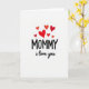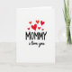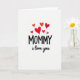 Designed with a bright white background, this card centers on a big, confident “MOMMY” set in a sturdy sans‑serif style. Just below it, “i love you” appears in a flowing handwritten look, adding a softer, more intimate touch ❤️. The two lines sit together like a steady embrace paired with a gentle whisper, creating a cozy, affectionate mood without needing extra imagery. Above the words, seven hearts float upward in a loose cluster, as if they’ve just been released into the air. Each heart is a different size, and their reds shift from deep crimson to lighter red‑orange, giving the arrangement depth and a tender rhythm. The layout keeps plenty of open space, so the message feels direct while still airy and sweet 🌼. The hearts are scattered rather than lined up, with the smallest ones near the top and the larger ones closer to the text.