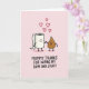 This greeting card shows a pale rose background with two simple, human-like objects holding hands in the center, creating a sweet, slightly cheeky sense of closeness ❤️. On the left is a white cylinder with dot eyes, a tiny smile, and pink cheek spots, with thin black arms and legs reaching toward its companion. On the right stands an earthy brown, teardrop-shaped figure with matching dot eyes and a small smile, leaning in as if sharing a friendly, affectionate moment. A single white sheet trails from the side of the white figure, adding a gentle sense of motion and texture. Above their joined hands, five red heart outlines float upward in a loose cluster, like little signals of love and gratitude 🌼. Centered beneath the characters, a thick black all-caps line of text sits low on the page and reads, “MOMMY THANKS FOR WIPING MY BUM AND STUFF!”. The letters look hand-drawn and slightly uneven, standing out strongly against the pink background. The final detail is the set of five red hearts arranged above the pair, rising higher from left to right.