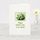 This greeting card features a centered botanical illustration framed like a little window, drawing your eye straight to the flowers. In the middle sits a close cluster of small, bell-shaped white blossoms nestled into broad, emerald-green leaves, arranged with the gentle closeness of friends leaning in ❤️. A thin white border surrounds the bouquet, and a lime-green outer frame adds a fresh edge against the warm cream background. Soft, diffused lighting makes the petals look velvety and the leaves slightly glossy, giving the scene a calm, affectionate hush. Beneath the framed artwork, a flowing line of text is placed near the lower center in matching green, reading like a tender note left for someone special 🌼. The spacing leaves plenty of open cream space around the frame so the greens and whites feel balanced and easy to take in. The lime-green frame is evenly thick on all sides, with crisp corners and a bright contrast against the cream field.