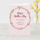 This Mother's Day card features a soft blush pink background framed by an oval wreath of flowers and greenery that feels like a gentle hug ❤️. Centered inside the wreath, the main line “Happy Mother’s Day” appears in deep cranberry-red lettering, drawing the eye first. Beneath it, the longer message “For An Amazing Mother In Law With Love” is set in a simpler dark red style, stacked neatly and balanced to feel calm and affectionate. The floral ring is filled with layered pink roses, smaller lavender blooms, and warm coral accents, with green leaves and thin vines weaving between them like a quiet, caring connection. The close, rounded shapes of the petals and the soft color choices create a friendly, family-focused warmth without being loud 🌼. A small decorative swirl sits near the wording, adding a light flourish without distracting from the message. The oval wreath is made up of pink roses at several points, dotted with tiny blossoms and curved green stems that loop smoothly around the text.