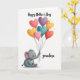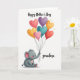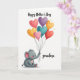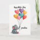 This greeting card features a sweet, stylized baby elephant in soft gray with pink accents on its ears, belly, and tiny feet, sitting calmly in the lower-left area with rosy cheeks and big dark eyes that suggest a tender, affectionate mood ❤️. Its curled trunk holds a bouquet of seven heart-shaped balloons that rise into the upper part of the design, like a gentle gesture of love being offered upward. The balloons have glossy highlights and come in coral, yellow, teal, purple, and pink, creating a friendly, romantic color mix against the white background. Small golden starburst sparkles are scattered between the balloons, adding a light, celebratory shimmer 🌼. A short message appears near the top in a flowing cursive-style font, set in a dark tone so it stands out clearly. A second line of text sits toward the lower right, balancing the elephant on the opposite side and keeping the layout airy. The overall scene feels like a quiet moment of caring, with the elephant’s relaxed posture and the floating hearts suggesting closeness and appreciation. The white backdrop stays minimal while the colorful heart balloons and tiny gold bursts fill the upper space with soft shine.