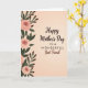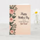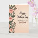 This card features a soft gradient background that fades from creamy peach at the top to warm beige at the bottom, setting a gentle, affectionate mood ❤️. Along the left edge, a vertical border of botanical drawings frames the scene with blush-pink blossoms and layered petals that look like they’re slowly opening. Deep emerald leaves and slim green stems weave between the flowers, with a few darker burgundy accents adding depth and a slightly romantic touch. The main message sits to the right of the floral border, centered in the open space so the words feel like they’re being offered directly to someone close. “Happy Mother’s Day” appears near the top in deep brown, followed by “TO A WONDERFUL” in smaller uppercase letters beneath it, also in brown. “Best Friend” is placed lower and larger, creating a tender emphasis on friendship, and a small 🌼 detail balances the warmth of the layout. The left-side floral column shows multiple pink blooms with swirling petals, surrounded by rich green leaves against the peach-to-beige background.