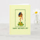 This card features a stylized little birdhouse perched on a bright yellow post, drawn with warm brown tones and a dark roof that feels cozy and protective. A slim red ribbon curls out from the round opening like a gentle hug, adding a romantic touch ❤️. An uneven green border surrounds the artwork, giving it a relaxed, sketchy frame that feels friendly and intimate. Below the post, three sunflowers bloom with sunny yellow petals and deep, textured centers, nestled into layered green leaves like they’re leaning close together. A twisting red-and-yellow ribbon wraps around the post, echoing the ribbon at the doorway and adding a festive, affectionate energy. The background stays a soft pale yellow, letting the warm colors glow without feeling harsh, and a small 🌼 fits right into the garden feel. The message text sits centered beneath the scene in dark green letters, leaving a comfortable margin of space between the flowers and the wording. The green border looks slightly uneven at the corners, with the sunflower stems clustered tightly at the base of the post.