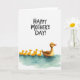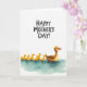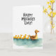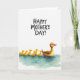 This card shows a gentle scene on a wide white background, where a brown adult water bird glides along calm aqua-blue water with a quietly protective look that suggests close family affection ❤️. Just behind it, six small yellow hatchlings trail in a neat line, their tiny orange beaks and little webbed feet adding sweet, friendly energy to the moment. The birds sit low on the page, leaving plenty of open space above that keeps the focus on their togetherness. Across the upper area, the text “HAPPY MOTHER’S DAY!” appears in dark lettering, standing out clearly against the white field. Soft, even lighting and lightly textured brushwork give the water a calm, springlike feel 🌼. Subtle ripples and pale highlights in the blue surface add movement, as if the group is drifting forward in sync. The bright yellow of the hatchlings contrasts warmly with the cool water while the adult bird’s rich brown feathers add depth. The water is painted with gentle aqua washes and faint white accents beneath the line of birds.