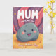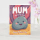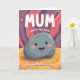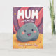 This card features a friendly grey boulder character with smooth rounded edges, a wide smile, dark twinkling eyes, and rosy cheeks that feel like a warm hug ❤️. It sits low in the design on a wavy golden-orange ground, patterned with soft concentric rings like gentle ripples around it. Behind, an abstract landscape of flowing curves in deep purples and rosy pinks creates a dreamy, cozy setting. Tiny star-like flowers and scattered light speckles float around, adding a soft sparkle that feels like shared affection. Near the top, large white text reads “MUM” in rounded lettering, standing out clearly against the darker background. Just above the boulder, smaller white text says “you’re my rock,” placed so it seems like the words are spoken directly to the smiling character 🌼. Along the bottom edge, “Happy Mother’s Day” appears in white, centered and easy to read. The background swirls from purple into pink with small floral bursts sprinkled across the scene.