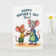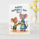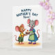 Designed with two sweet, mouse-like characters on a white background, the scene focuses on a gentle exchange that feels close and affectionate ❤️. On the left, a smaller brown-furred rodent in a bright yellow shirt and forest-green shorts with blue suspenders smiles up with wide eyes while holding out a tiny chocolate cake. The cake is neatly frosted and topped with a single red fruit, offered forward as if in a shy, caring gesture. Facing them, an older grey-furred female rodent in a soft blue dress with puffed sleeves leans in with a tender smile, her hands reaching to accept the treat. She wears a green checkered apron and a fuchsia beaded necklace that adds a cheerful pop of color 🌼. Near the top, friendly blue text reads “HAPPY MOTHER’S DAY Nan!” and sits centered above the characters. Light shading along their faces, clothing folds, and the cake gives a softly rounded look, with the red fruit standing out against the dark frosting.