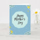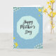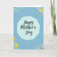 Designed with a gentle spring palette, this card features the words “Happy Mother’s Day” centered in a dark, flowing style that feels affectionate and close ❤️. The lettering sits inside a softly edged cloud shape in light cyan, creating a calm focal area against a deeper sky-blue background. In opposite corners, small clusters of white blossoms with fresh green leaves frame the message like a quiet bouquet. Two cheerful yellow birds glide through the scene—one near the upper right and another near the lower left—adding a light, friendly sense of connection. Tiny white cross-like sparkles are scattered across the deeper blue, like little twinkles that make the space feel tender and airy. The layout keeps the text easy to spot while the floral corners and birds guide your eye around the design in a gentle loop 🌼. The overall look stays soft and airy, with the bright accents balancing the cooler blues. Numerous small white cross shapes are sprinkled evenly across the background, behind the cloud and around the birds.